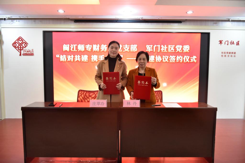 最后,庄翠冷代表财务处党支部与军门社区党委签订了“结对共建 携手文明”共建协议,并希望以此次签订协议为契机,汇聚双方的力量,共同探索党建共建的有效方法和载体,定期开展联合主题党日、志愿服务等活动,构建资源共享、优势互补、互相促进、共同提高的新格局,创新“党建+”新模式引领。