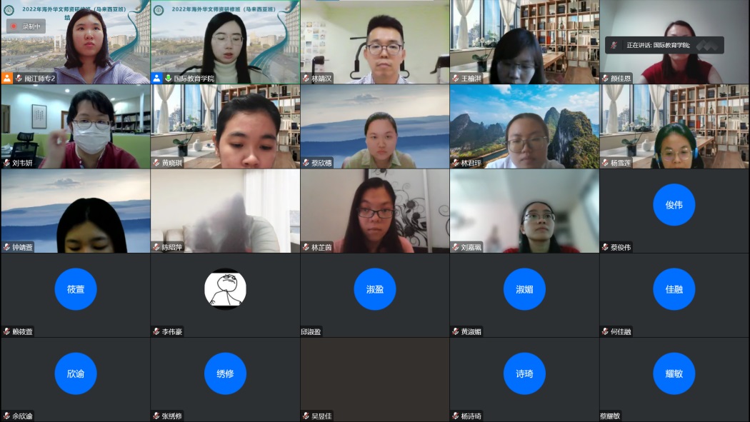 2022年12月16日,2022年海外华文师资研修班(马来西亚班)圆满结束。本次研修班由福建省侨联主办,福州市侨联和闽江师范高等专科学校承办,马来西亚华校教师会总会协办。来自马来西亚的50位海外华文教师齐聚云端,共同参加了集中研修学习。
