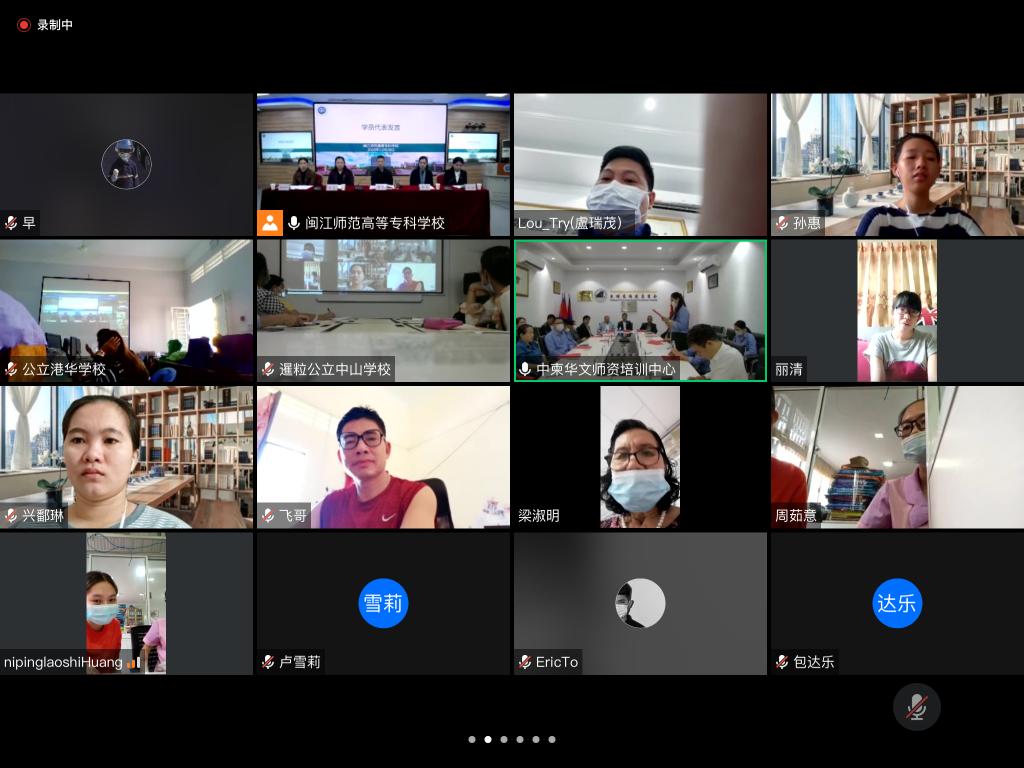 来自柬埔寨民生学校的林秀銮老师作为学员代表通过视频连线进行了发言。她代表培训班学员,向为华文教师的专业成长搭建此次培训平台的闽江高等师范专科学校、柬华理事总会、柬埔寨福建总商会、中柬师资培训中心的领导以及负责培训的各位老师表示了衷心的感谢和崇高的敬意,并表示将以热情饱满的学习态度来完成各项学习任务,认真学习,努力提升自己的教学技能,给自己和自己所在的学校提交一份满意的答卷。
