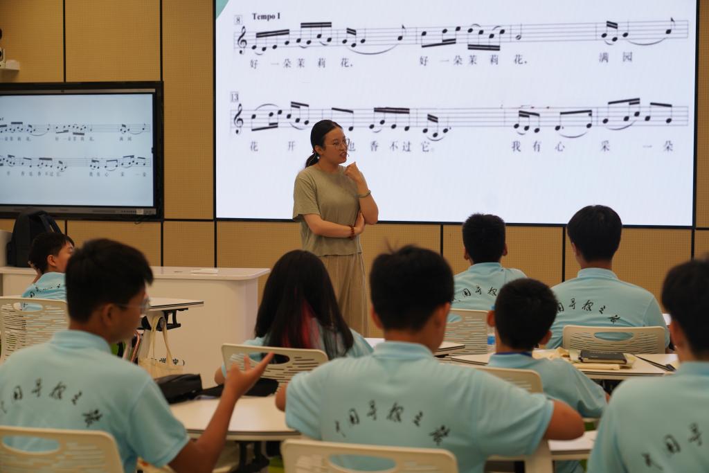 “好一朵美丽的茉莉花,好一朵美丽的茉莉花,芬芳美丽满枝桠,又香又白人人夸,让我来将你摘下,送给别人家,茉莉花呀茉莉花。”。在课堂上,《茉莉花》的旋律悠扬响起,华裔青少年们用稚嫩而真诚的声音,跟着老师将这首中国民谣演绎得淋漓尽致。歌声中,他们不仅学会了歌曲的旋律,更深刻感受到了歌曲背后的文化内涵和民族情感。