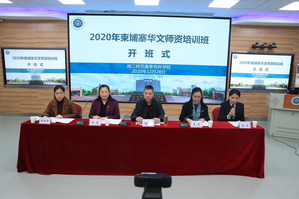 12月28日上午,由福建省侨联主办,闽江师范高等专科学校承办,福州市侨联协办的“2020年柬埔寨华文师资培训班”开班仪式,在闽江师专(福州)和柬埔寨福建总商会(柬埔寨金边)通过网络连线顺利举办。闽江师专校长林贤、福建省侨联文化交流部部长齐志、闽江师专副校长林旻、柬埔寨福建总商会会长、中柬华文师资培训中心理事长邱国兴、柬埔寨柬华理事总会副会长、柬华理事总会文教处蔡伟华、柬埔寨福建总商会执行会长黄可锦、柬埔寨柬华理事总会理事符鸿英及省市侨联相关部门负责人等参与了开班仪式,来自柬埔寨的华文教师学员在线观看了开班仪式。
