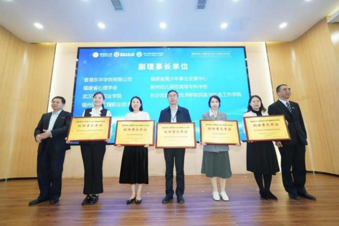 3月24日,在中国心理学会心理学标准与服务研究委员会、全国卫生健康职业教育教学指导委员会健康与管理类专委会心理咨询分委会指导下,由上海心融健康科技股份(德瑞姆心理学院)有限公司、福建师范大学、闽江师范高等专科学校牵头,在福建省福州市成立海峡两岸心理服务行业产教融合共同体。中国心理学会候任理事长罗跃嘉、福建师范大学副校长郑家建、上海心融健康科技股份(德瑞姆心理学院)有限公司总裁冯耘、高雄师范大学校长李昭蓉、闽江师范高等专科学校党委书记林子波、校长杨建义等领导嘉宾出席会议。