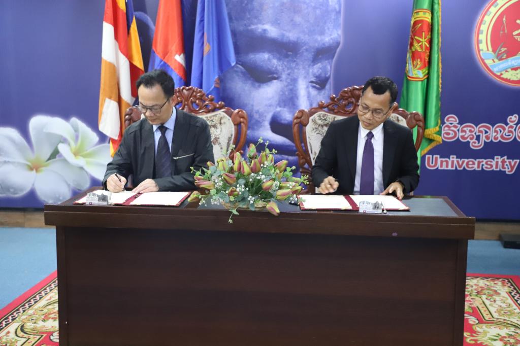 随后,双方签署校际合作备忘录,并共同为“中柬海丝学院”揭牌。