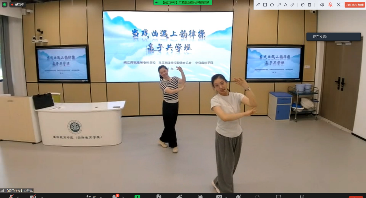 2024年5月26日上午,由闽江师范高等专科学校、马来西亚华校教师会总会、中马海丝学院联合举办的“当戏曲遇上韵律操:—亲子戏韵舞动共学班”在线上平台圆满举行。本次课程以线上直播形式开展,来自马来西亚的40对、共80名华裔亲子和华校校长共同参加了本次课程学习。