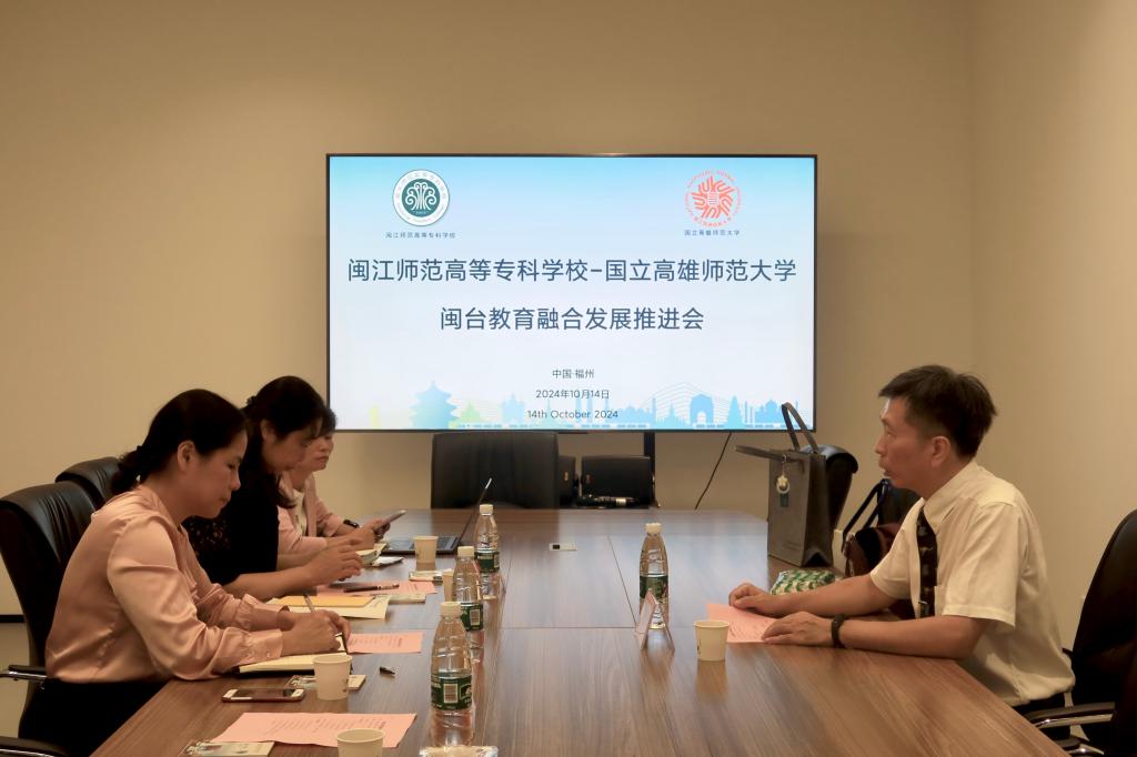 2024年10月14日上午,闽江师范高等专科学校与台湾高雄师范大学共同举办了闽台教育融合发展推进会,旨在深化两岸教育交流合作,共同推动海峡两岸心理服务行业的发展。台湾高雄师范大学教育学院方德隆院长、我校台港澳事务办公室主任兰浈、人文与管理学院院长陈勤及副院长谢姗姗出席会议。