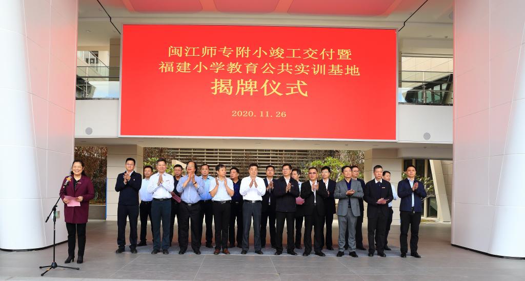 11月26日,闽江师专附属小学竣工交付暨福建省小学教育公共实训基地揭牌仪式在闽江师专附属实验小学隆重举行。福建省教育厅、福州市教育局领导,福州大学、福建师范大学、福建工程学院、福建江夏学院、闽江学院等合作院校和高新区管委会主要领导以及闽江师专全体校领导出席了揭牌仪式,仪式由闽江师专副校长林旻主持。