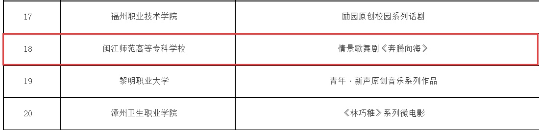 近日,中共福建省委教育工委公布了2023年福建省高校思想政治工作质量提升综合改革与精品建设项目入选名单,我校情景歌舞剧《奔腾向海》入选福建省高校原创文化精品项目;“生芽”大学生职业发展工作室入选福建省高校辅导员名师工作室。
