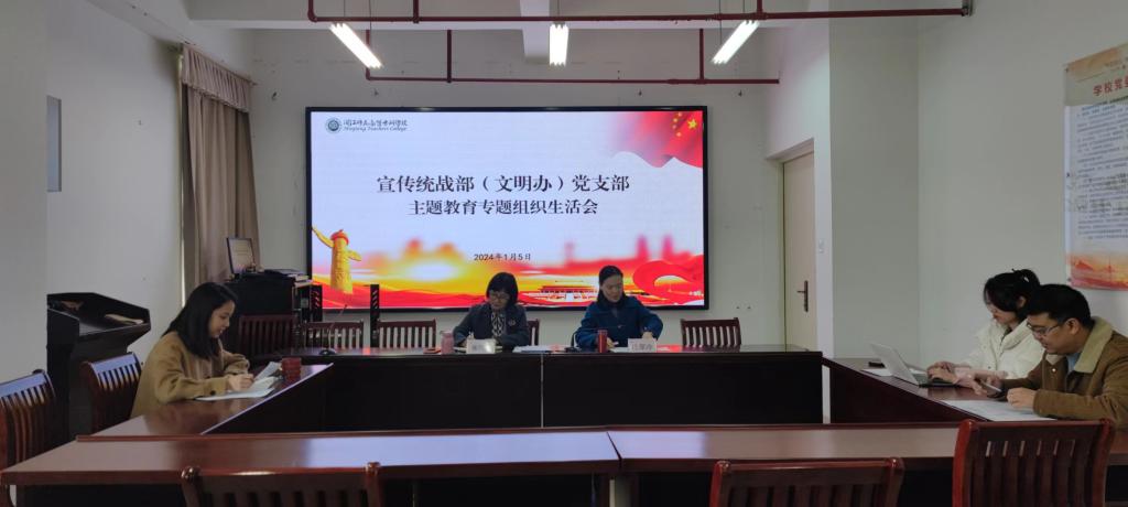 根据校党委和机关党委统一安排,1月5日上午,宣传统战部(文明办)党支部召开主题教育专题组织生活会及民主评议党员会议。会议由党支部书记张信容主持。机关党委宣传委员庄翠冷列席。