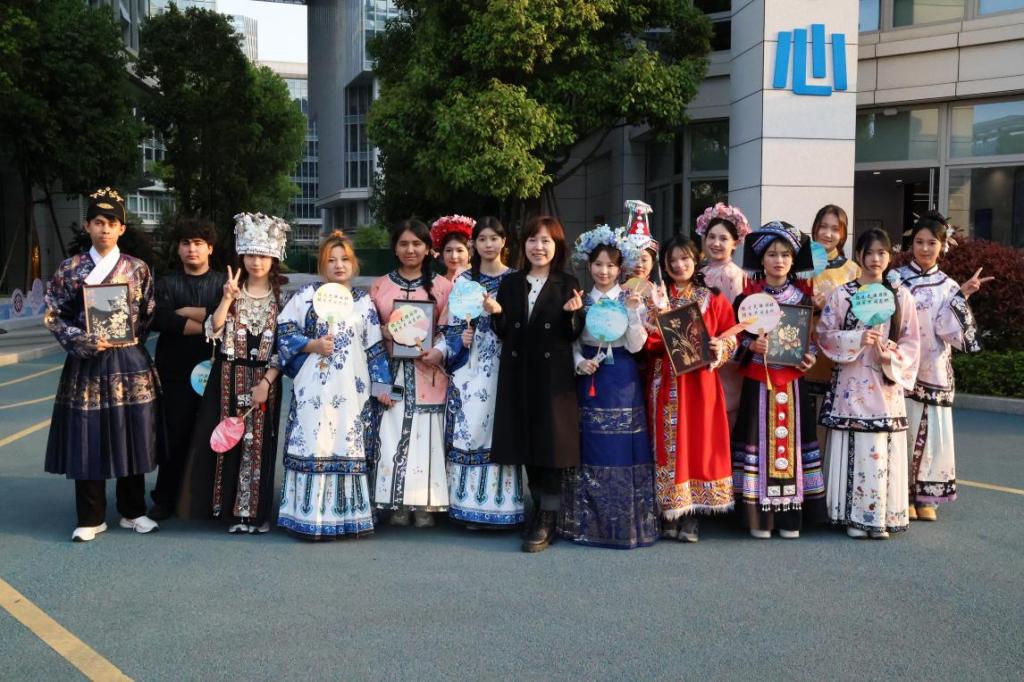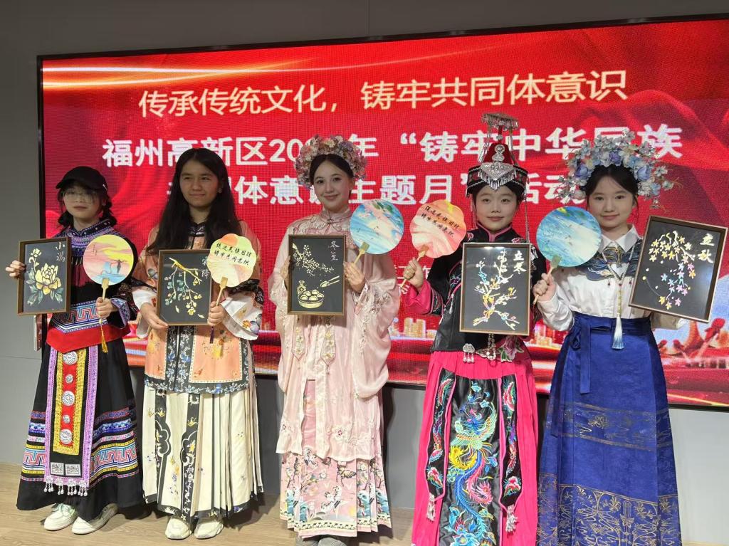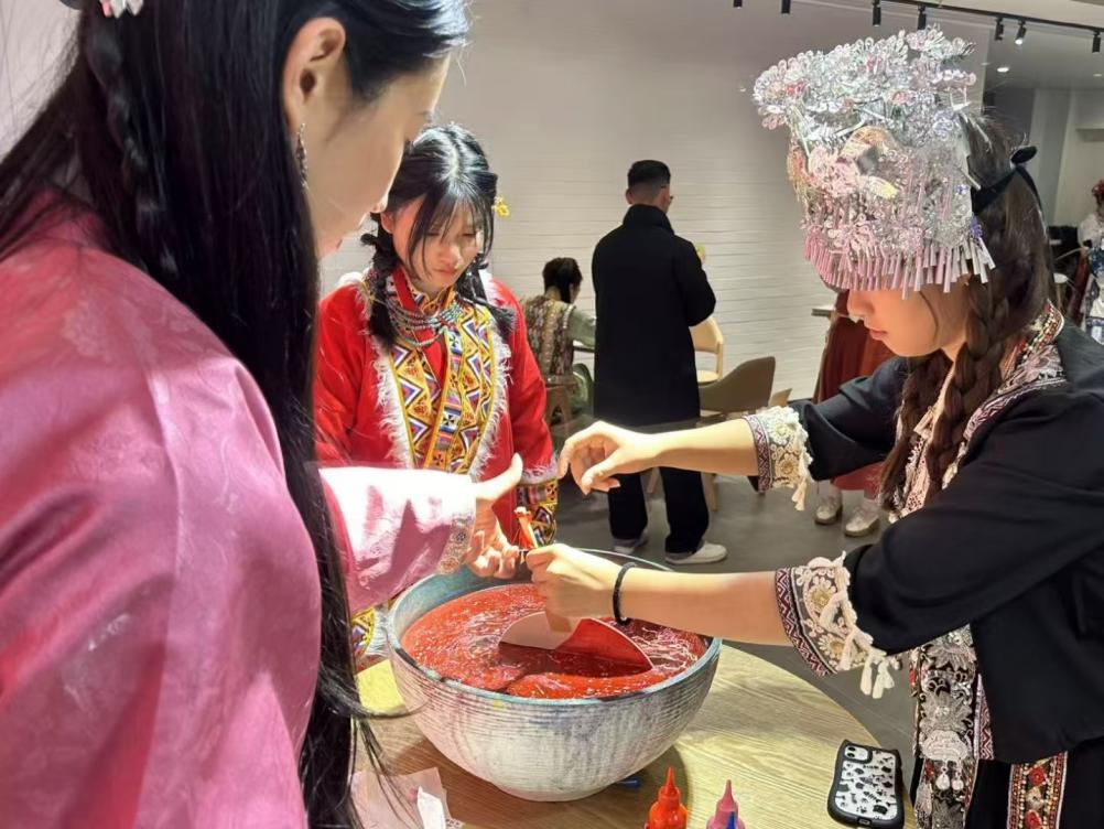 活动现场设置了非遗烧箔、漆扇制作、民族服饰体验三大主题展区,各民族师生代表纷纷参与到非遗手工艺品制作中,以“看得见、摸得着”的方式体验中华传统文化的独特魅力。