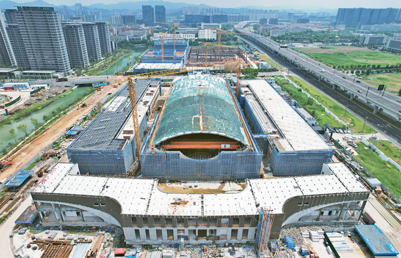 2023年7月16日,浙江杭州,“超重力离心模拟与实验装置”国家重大科技基础设施实验大楼封顶。图为7月17日拍摄的“超重力离心模拟与实验装置”实验大楼(无人机照片)。新华社发 龙巍/摄