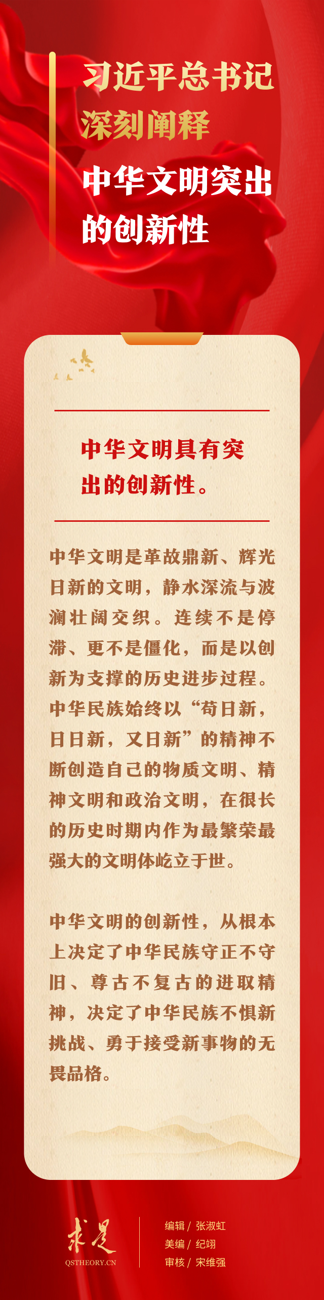 9月1日出版的第17期《求是》杂志刊发习近平总书记重要文章《在文化传承发展座谈会上的讲话》。在这篇重要文章中,总书记从中华文明具有突出的连续性、突出的创新性、突出的统一性、突出的包容性、突出的和平性5个方面,对中华文明的突出特性作出深刻阐释。