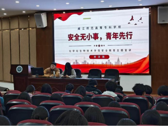 为提升公众交通安全意识,让同学们深刻理解交通安全的重要性,共同营造安全、文明、和谐的交通环境。2024年12月15日,化学与生物技术学院班主任林泽田老师在仓山校区学术报告厅开展“安全无小事,青年先行”晚点名主题教育活动。