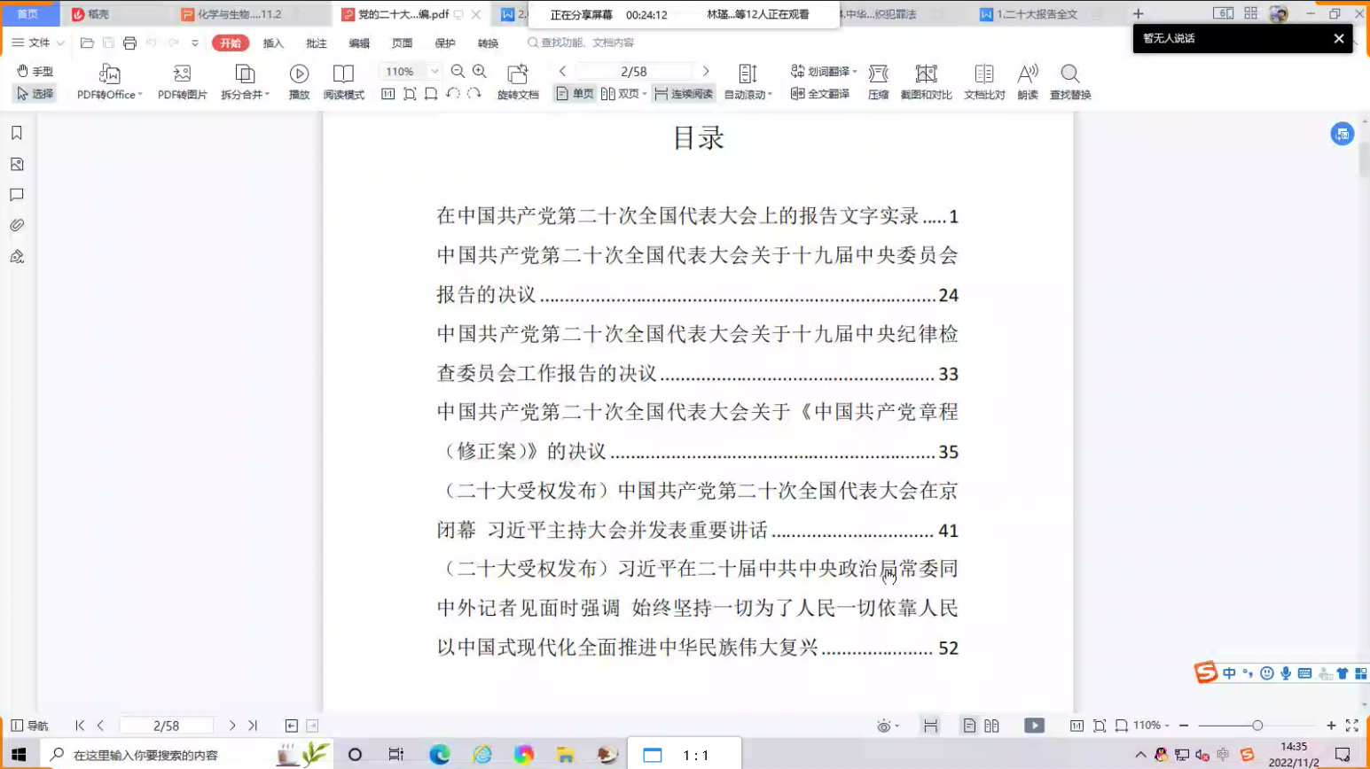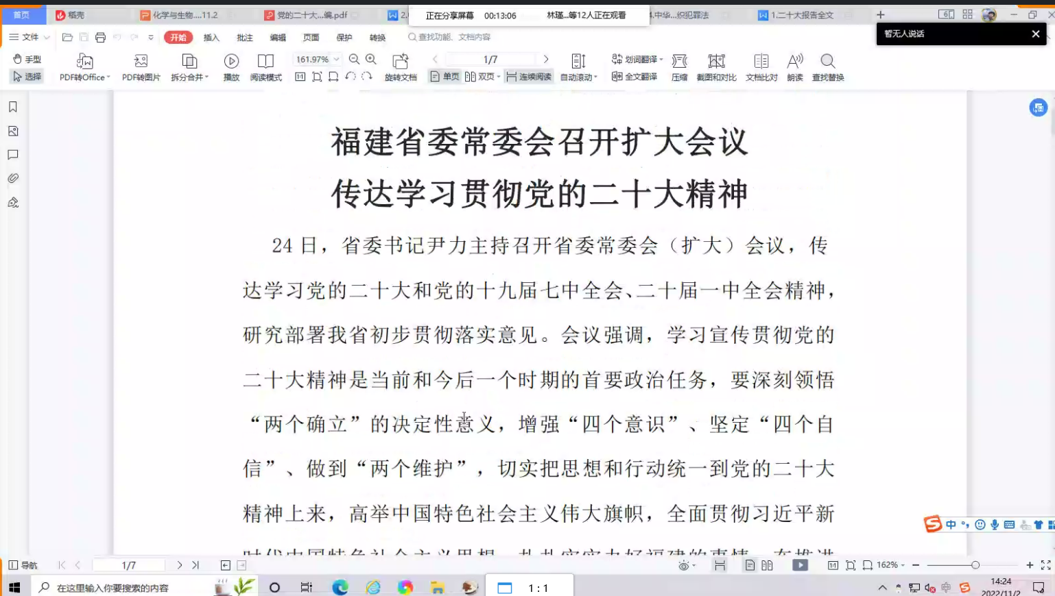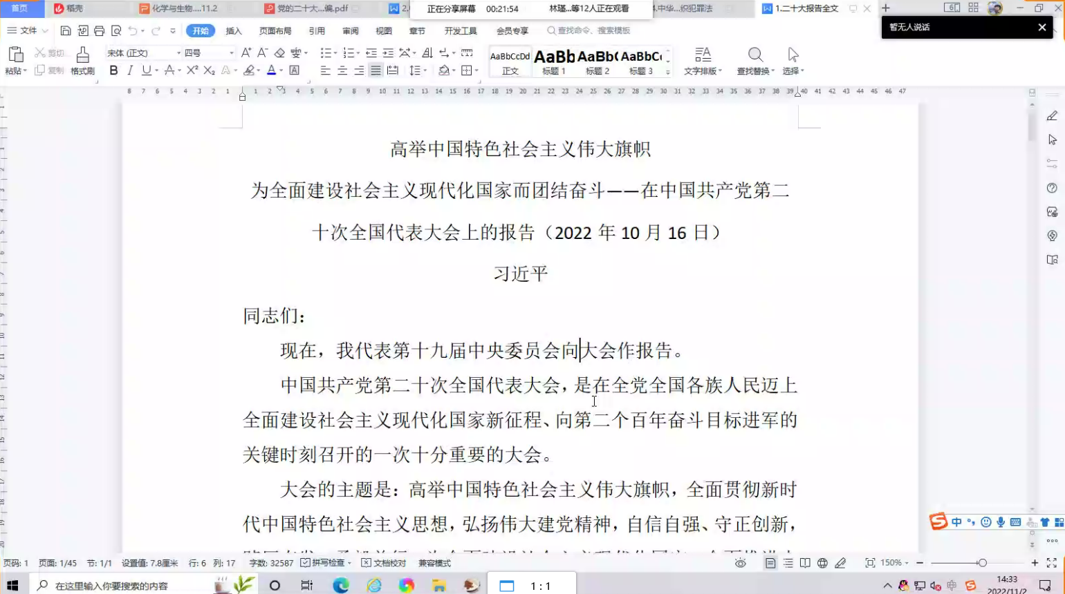 2022年11月2日下午,化学与生物技术学院党总支在线上召开党的二十大精神专题学习。化学与生物技术学院党总支书记陈宗保主持。