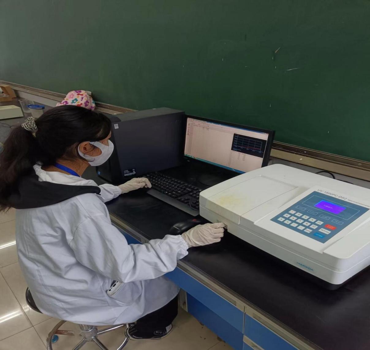 学生在各班班主任的指导下利用所学的化学检验技术开展校园水质检测活动。班主任首先向同学们讲解了水质检测的相关知识、流程和注意事项,强调水质检测的要点,在检测过程中避免失误。同学们按照老师的要求,认真细致的进行采样、处理、定量、仪器分析等,检测出水质达标的鉴定结果。