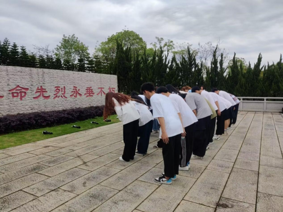 同学们登上高盖山,怀着沉重的心情走进烈士陵园,一块块石碑映入眼帘,给人庄严肃穆之感。每一位烈士的墓碑背后都是一段抛头颅,洒泪血的悲壮史,他们为了民族的复兴、人民的解放,不惜牺牲自己年轻的生命来换取国家安定、人民幸福。在高盖山烈士陵园,全体学生干部在纪念碑前默哀一分钟,寄托着对烈士无限的追思、缅怀与敬意,让学生在思想上的得到了一次真正意义上的洗礼。