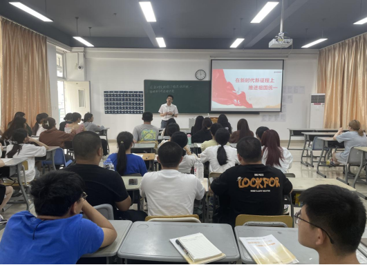 2023年5月6日下午,化学与生物技术学院院长陈宗保走进课堂,以“在新征程新时代上推进祖国统一”为主题为2022级食品药品监督管理2班全体学生上了一堂有高度、有情怀的《形势与政策》课。