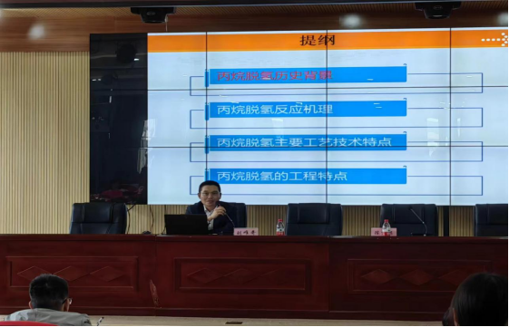 讲座伊始,陈宗保介绍了化学与生物技术学院的基本情况,并为刘唯奇专家为学院师生作讲座表示热烈欢迎。刘唯奇围绕“化工教育文化与发展”主题展开报告。他首先对丙烷脱氢工程进行了系统介绍,重点分析了丙烷脱氢的历史背景、反应机理和主要工艺技术特点,加深师生对丙烷脱氢的认识,增进对化工文化的了解,增加学生学习化工的兴趣。接着,他从丙烷脱氢讲到了西部大开发,又提到了技术革新、一带一路等重大计划,还列举了一些美国公司在化工方面的成果。最后,报告深入阐述了化工生产的数据化与智能化,通过数据化模拟更好地推进化工生产的发展以获取更大的经济效益,智能化的巡视监控设备也已经投入实际化工生产管理使用,这为学院师生研究数据在化工生产中的应用提供了思路和方法。