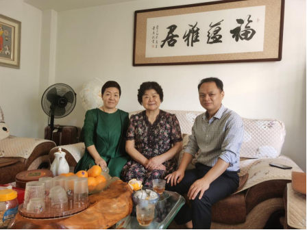 陈宗保院长一行看望林履端老师,感谢老教师在艰苦条件下兢兢业业的为学校的发展倾注了大量的心血,做出的贡献,是学院发展的宝贵财富。交谈中,林老师回忆当年,依然情系教育,关注学院的发展。