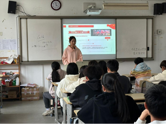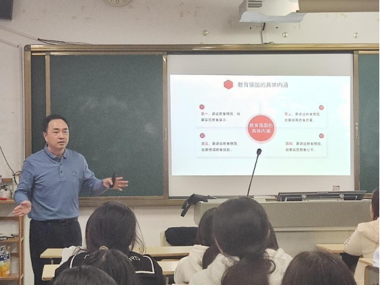 洪书源首先以新时代10年来,特别是全国教育大会召开5年来的教育成就为切入,讲述了教育强国的内涵,不仅包括教育的质量水平,还涵盖教育的公平性、创新性和国际性。接着,他提到,教育强国建设是中华民族伟大复兴的基础工程,需要全社会共同努力,更需要广大青年奋斗和奉献。最后,洪书源列举毕业生爱岗敬业的案例,引发同学们思考并讨论“教育强国建设,你做些什么?”,希望同学们勇做奋斗有为的强国青年。