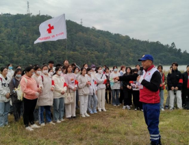 12月9日,22食品药品监督管理1、2班、22生物制药技术1、2班4个团支部与福州市红十字(情天)应急救援志愿服务队徒步前往登云水库开展“登云水库全民健身徒步”志愿活动。抵达登云水库后,志愿服务队队员以小游戏“花开花落”热身,增强志愿者之间的认同感、信任度。接着,队长从“溺水如何自救”“看见他人溺水如何救人”两个方面向在场的志愿者传授溺水应急救护知识,运用鲜活的案例和生动的解说让大家深刻地了解并掌握了溺水时自救与救人的技能。教学结束后,教官组织志愿者们沿湖开展垃圾分类。