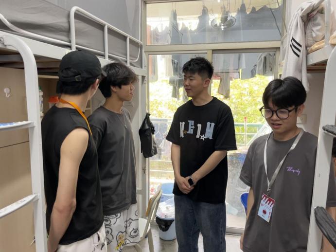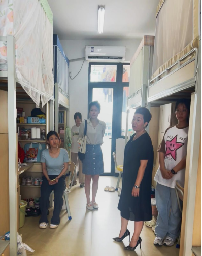 本次重点检查指导:一是宿舍设施安全,即检查各宿舍的电路安全、通道安全、消防安全等;二是文明卫生,即宿舍卫生情况、物品摆放、了解学生生活与学习情况等。老师们与学生干部认真检查了宿舍卫生情况并对存在安全隐患即时整改,她们与学生亲切交谈,了解学生的日常生活和五一假期安排,询问学生在宿舍的学习情况和实际困难,并耐心解答。最后,张瑛叮嘱同学们要时刻保持宿舍卫生,养成良好的生活习惯,共同营造舒心的宿舍环境。