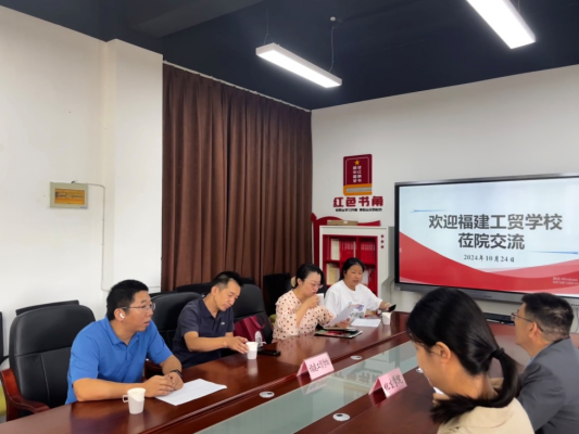 10月24日上午,福建工贸学校副校长林兆昌一行莅临我院,就中高职衔接教育工作进行深入交流。院长陈宗保出席了此次交流会。