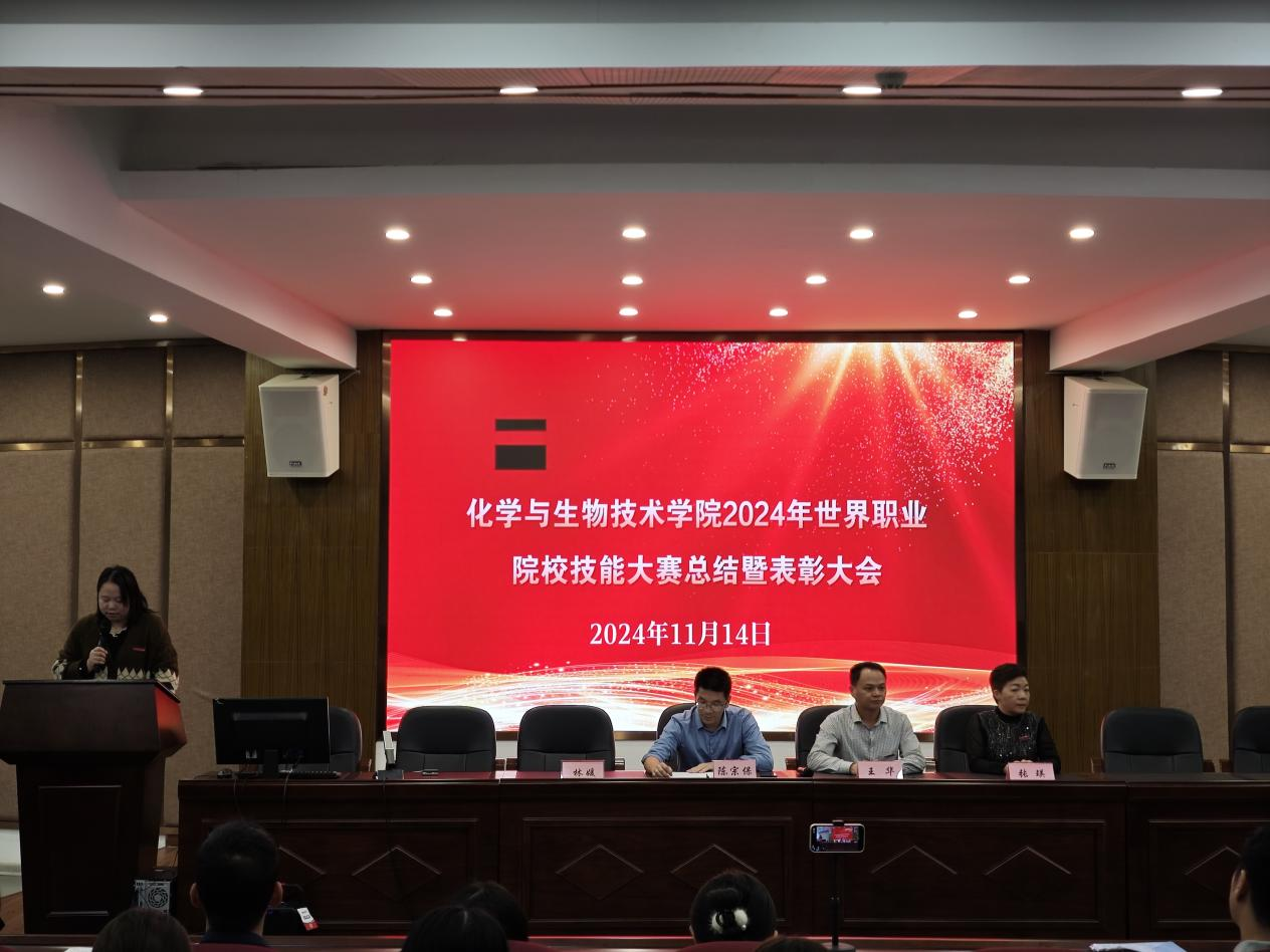 为表彰先进,树立典型,进一步激发全院师生的积极性和创造性,培养更多复合型高素质技术技能型人才,2024年11月14日,化学与生物技术学院在多功能厅召开“2024年世界职业院校技能大赛总结暨表彰大会”。学院全体领导及部分师生代表参会,会议由林媛副院长主持。