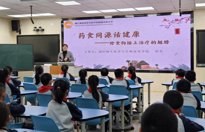 我院高佳博士为闽江师专附属小学带来的“药食同源”科普讲座,不仅激发了孩子们成为医药工作者的梦想,也彰显了高职院校服务社会、传承文化的积极作为。