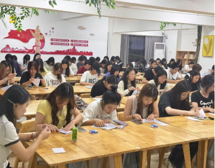 现场气氛热烈,一系列兼具趣味性与教育性的活动有序开展。在折纸实践环节,同学们充分释放创意灵感,灵巧的双手将平凡纸张化作栩栩如生的艺术作品。折纸过程中,大家不仅提升了动手能力,更深刻领悟到专注与耐心是成就劳动成果的必备品质。随后的劳动精神接力传话猜词环节将活动推向高潮,同学们以小组为单位,凭借默契配合传递劳动精神相关词汇,在轻松愉悦的氛围中深化了对劳动精神内涵的理解。