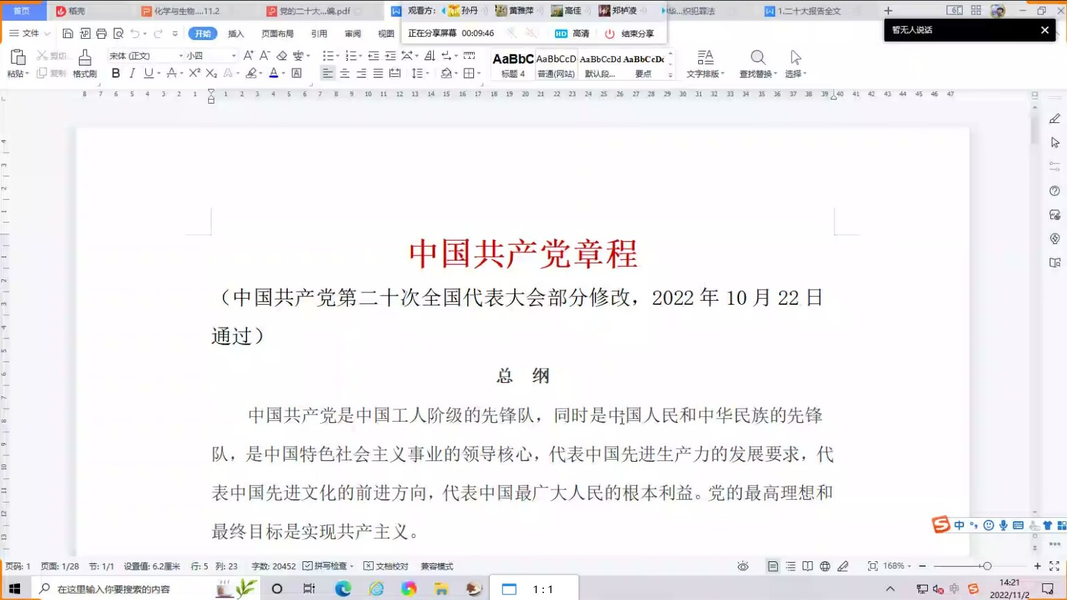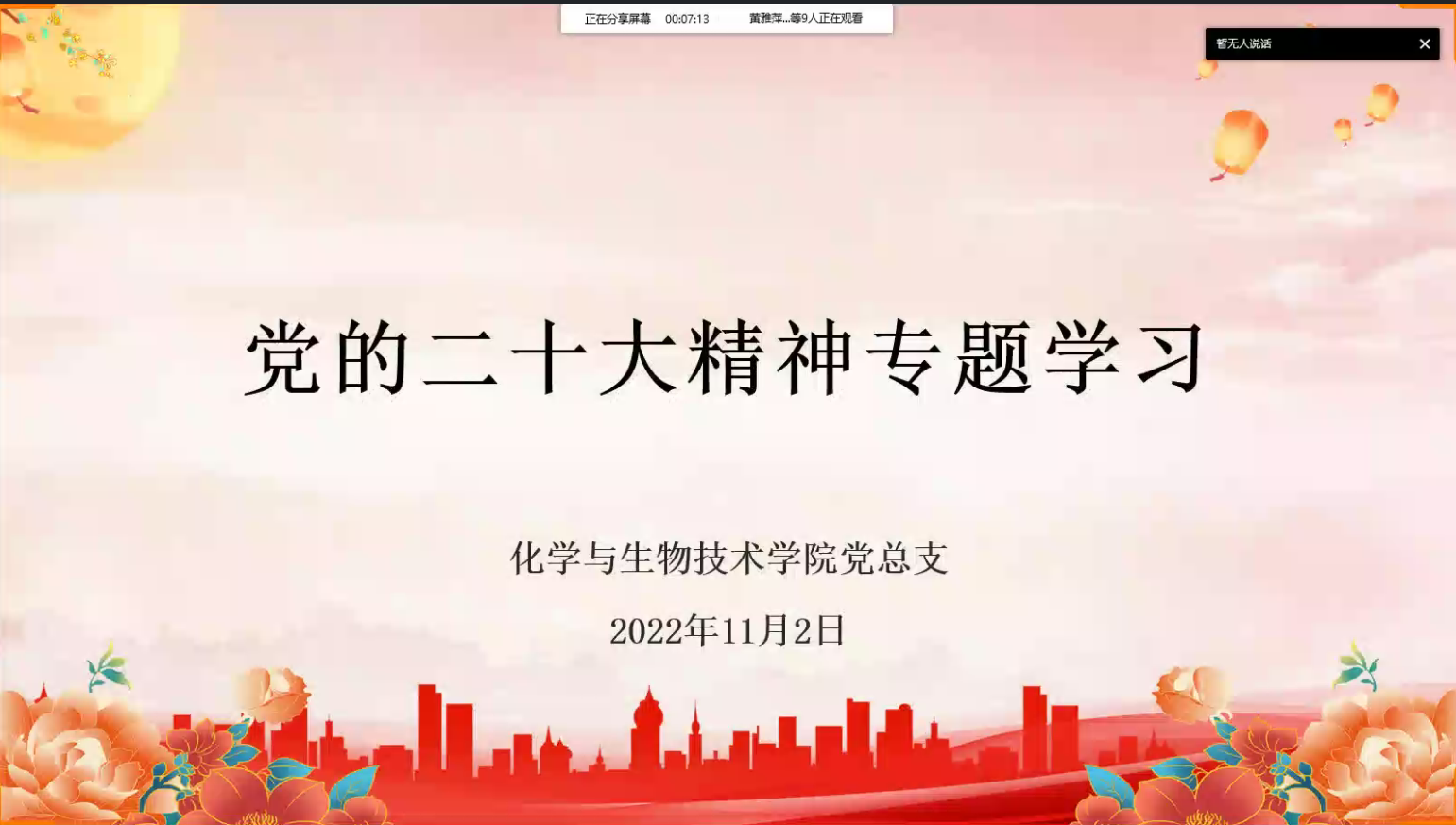 2022年11月2日下午,化学与生物技术学院党总支在线上召开党的二十大精神专题学习。化学与生物技术学院党总支书记陈宗保主持。