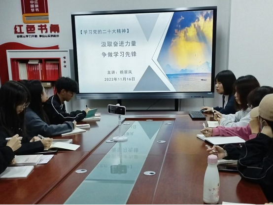 为深入学习贯彻习近平新时代中国特色社会主义思想主题教育,坚定理想信念,增强党性修养,2023年11月16日,化学与生物技术学院学生支部在党员活动室开展“汲取奋进力量,争做学习先锋”学习党的二十大精神专题党课。本次党课由学生支部书记赖翠凤主讲,22位入党积极分子参加。