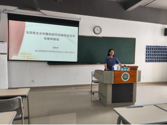 11月26日,杨威涛老师从“马克思主义中国化进程与青年使命担当”视角出发,围绕科学理论的指导、坚定的理想信念、坚实的群众基础、彻底的自我革命四个方面阐述了中国共产党如何推进马克思主义中国化时代化。接着,她组织同学们讨论如何践行习近平总书记提出的“六个坚持”,从而加深对党的二十大报告的理解。最后,她希望同学们做到思想“绷紧弦”、责任“扛在肩”、行动“拉满弓”,争做砥砺奋进的青年马克思主义者。