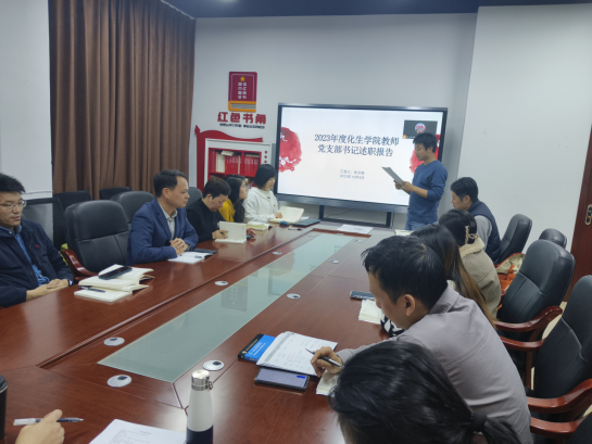 2023年12月4日下午,化学与生物技术学院党总支召开2023年度党支部书记抓党建工作述职评议会。会议由学院党总支书记王华主持,全体党员参加会议。