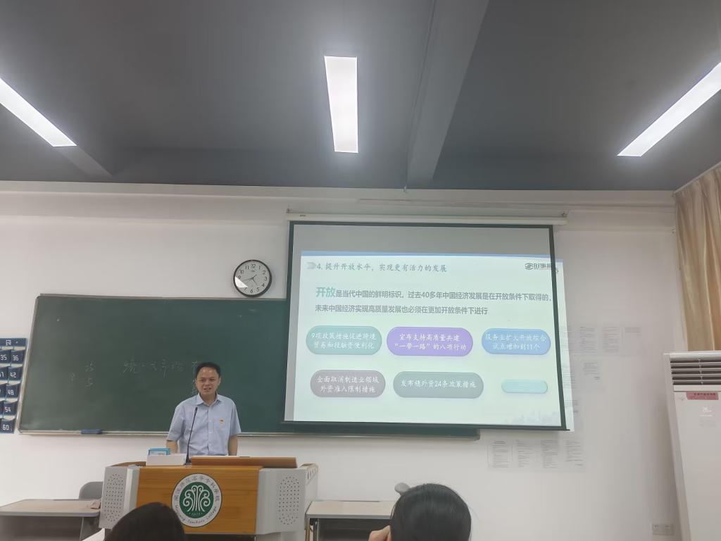 王华以“中国经济高质量发展扎实推进”为题,强调高质量发展是“质”与“量”的辩证统一,这一理念充分体现了中国经济发展的新阶段、新目标和新要求,对推动经济社会转型升级具有重要意义。他结合具体案例,生动展示了中国经济高质量发展的实践成果:从制造业的转型升级、服务业的快速发展,到创新驱动的战略实施,再到生态文明建设的全面推进,中国经济高质量发展的步伐日益坚定。他希望同学们要更加坚定对中国经济未来发展的信心,培育正确的价值观和人生观,努力学习、敢于创新、练就本领,为推进中国经济高质量发展贡献青春力量。