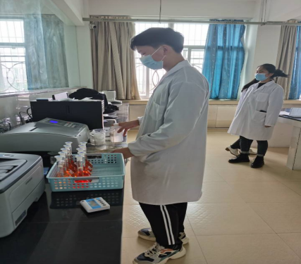 陈主任一行还特地来到实训室看望了化工系五年专正在紧张训练准备参加国赛的学生,鼓励学生调整心态,取得佳绩。