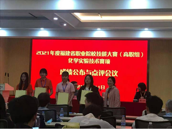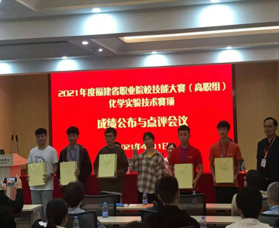 2021年4月9日到11日,2021年福建省职业院校技能大赛(高职组)“化学与实验技术”赛项在福建生物工程学院举行。经过各模块比赛的激烈角逐,最终化学与生物工程系20工业分析1班郑心怡同学获得一等奖,20工业分析2班周铖浩同学获得二等奖(指导老师:林珍红、吴伟华)