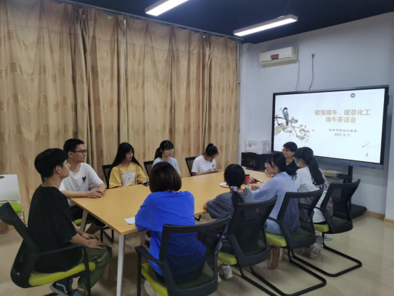 为更好传承中华民族优秀文化传统,弘扬和培养以爱国主义为核心的民族精神,加深大学生对端午节这一传统节日的了解,化学与生物工程系组织留校过节学生于2021年6月11日下午17:30分在教学楼4-106教室召开了以“粽情端午,暖意化工”为主题的端午茶话会。活动由辅导员郑老师主持。