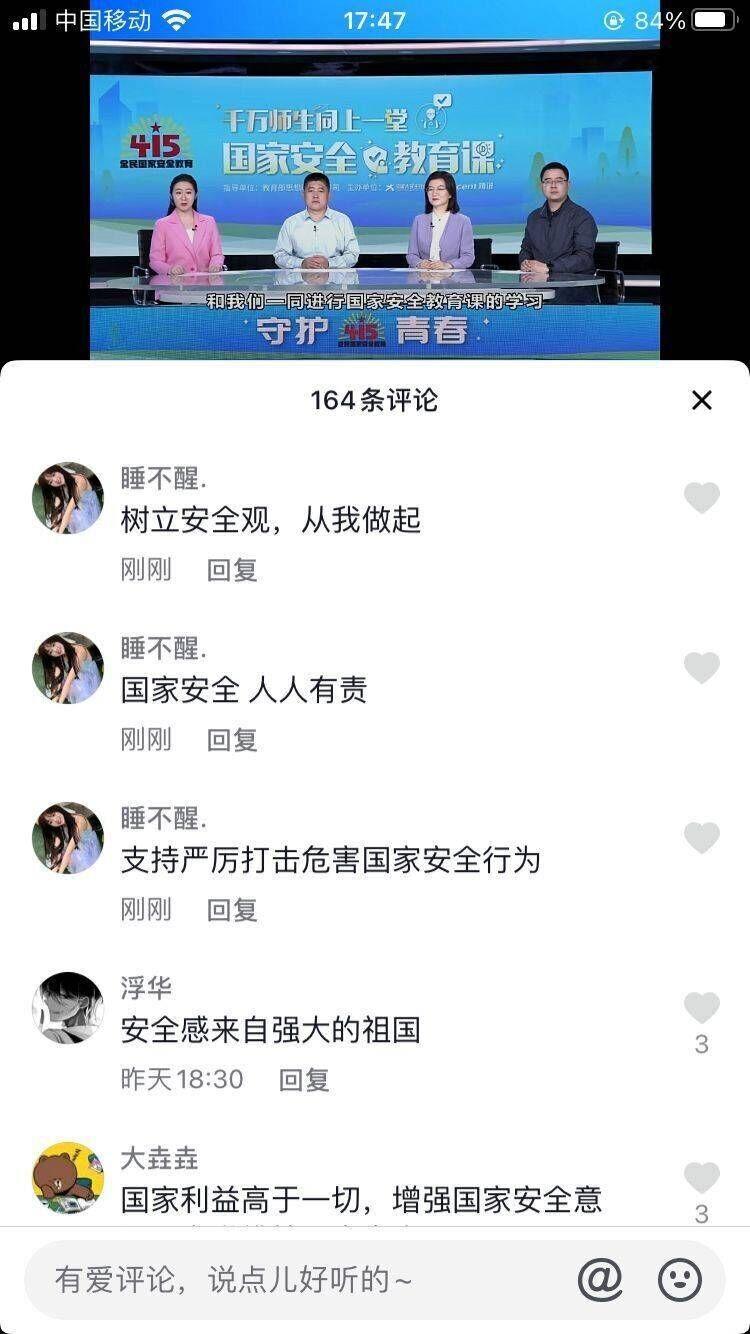 全体师生积极参与话题互动,利用各个平台快速、便捷的高效渠道进行留言,与全国师生进行深刻交流。活动有力地促进学校学生的思想道德修养建设,提高师生们的国家安全意识;了解国家安全增强了全校师生依法履行义务和职责、维护国家安全的自觉性。让同学们更加深刻地意识到“只有国家安全,人民才能安居乐业”。活动中,全体师生纷纷表示,通过这种话题互动的方式,了解了更多关于国家安全方面的知识,严格遵守法律法规,维护国家安全是当代大学生的义务,更要将其作为义不容辞的神圣职责,铭记于心!