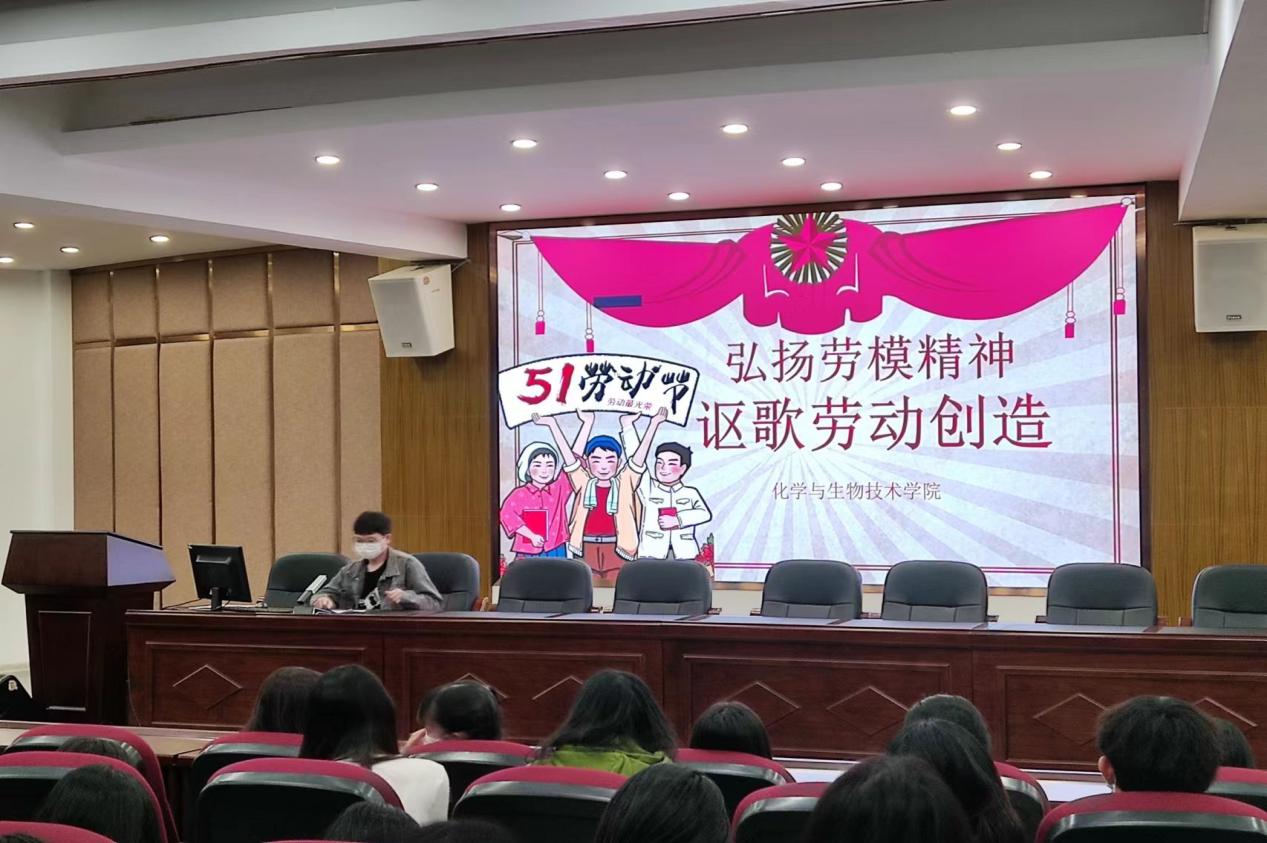 为了培养新时代青年劳动观念、劳动习惯和勤俭节约、艰苦朴素的思想,弘扬劳动精神、劳模精神,向劳动模范学习,化学与生物技术学院于2022年5月2日在多功能厅开展了“弘扬劳模精神,讴歌劳动创造”微视频比赛。