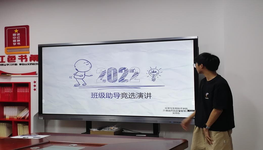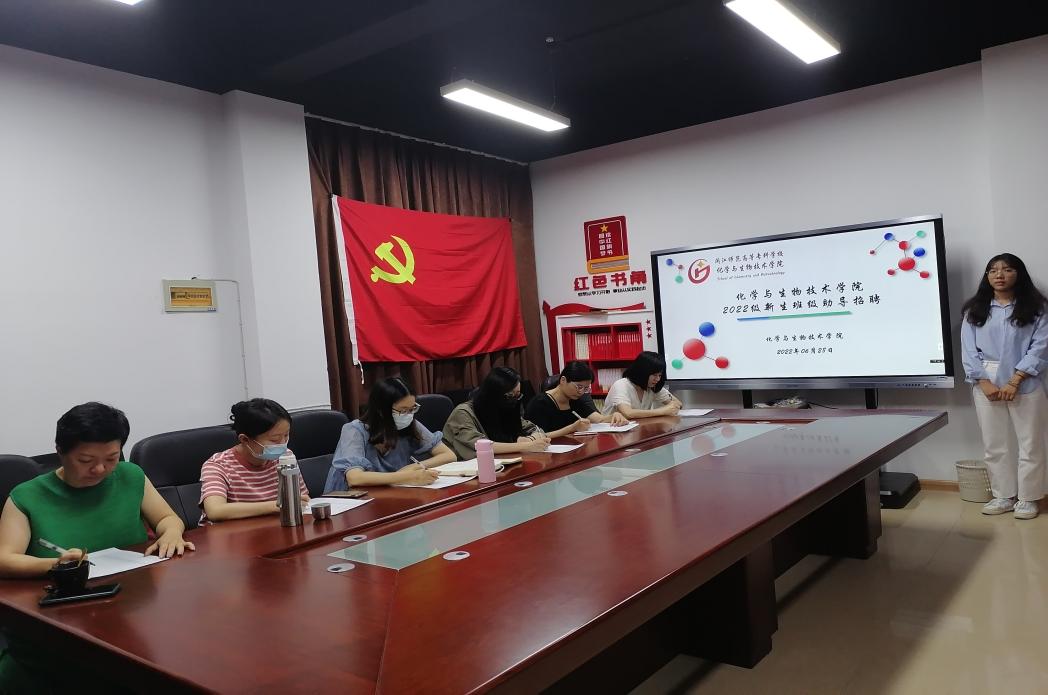 为了加强2022级新生管理、教育工作,帮助新生尽快适应大学生活与学习,推进学生工作全面开展,化学与生物技术学院于2022年6月28日在4-106组织2022级新生班级助导竞选。