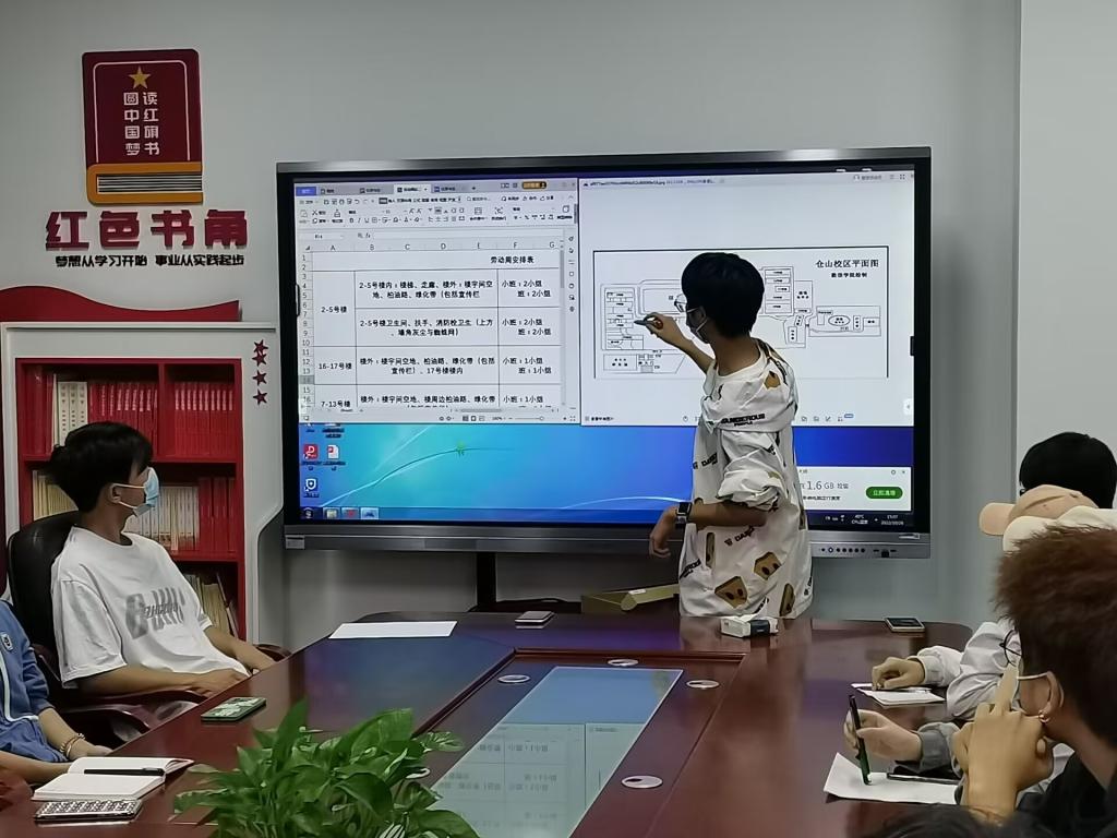 会上,辅导员赖翠凤老师首先向同学们阐明了劳动教育实践周的目的和意义,学院将以劳动教育实践周为契机,立足日常生活劳动,组织学生宿舍卫生清洁与内务整理,养成勤于劳动、善于劳动、乐于劳动的良好习惯。同时,发挥课堂教学主渠道作用,依托校内实验室,结合学科和专业知识设置实践训练,积极拓宽劳动教育领域,提升劳动能力。接着,她重点安排了各班劳动周的区域划分、职能分工、工作要求和考核标准,让同学们了解自己的工作内容,重视劳动教育,以积极饱满的态度积极参与日常生活劳动,顺利完成劳动周工作。最后,她希望同学们提高劳动思想认识,把握机会,享受劳动的乐趣,在实践中创造有价值的劳动成果。