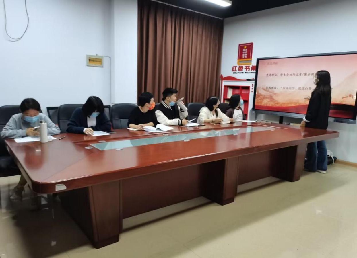 首先,学院党总支副书记张瑛强调了作为学生干部要端正学习态度,在工作中要秉持一颗积极向上的心,为同学服务,做好引领作用。接着,参选的学生围绕个人的基本情况、对竞选岗位的认知和对工作的规划这几个方面展开竞选演讲,他们以良好的精神面貌、流利的语言和敏捷的思维展现自己,畅谈对学生干部工作期许和热爱。同时,辅导员老师们也对参加竞选的学生提出了意见和建议,以便他们更好地提升自我。