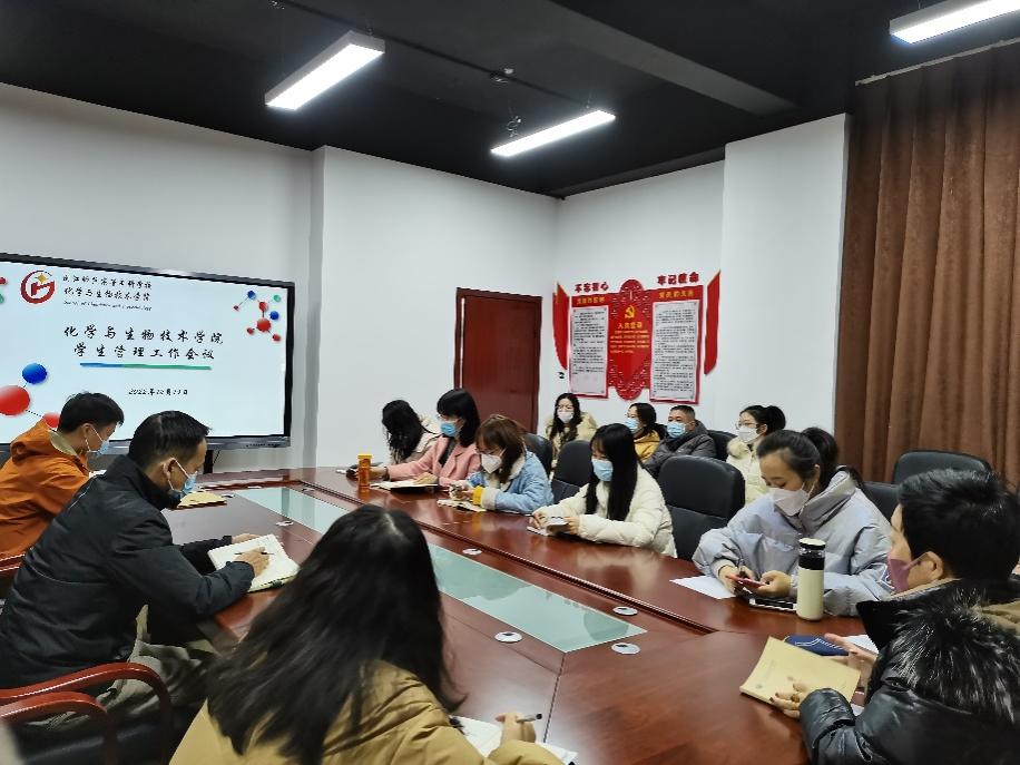 2022年12月14日下午,化学与生物技术学院召开期末学生管理工作会议,全体班主任、辅导员参加会议,张瑛副书记主持会议。