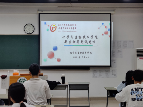 为进一步加强朋辈教育,协助辅导员做好2023级新生思想教育工作,帮助新生尽快适应大学生活,2023年9月4日晚上,化学与生物技术学院2023级新生助导竞选在党员活动室顺利举行。学院辅导员老师担任此次面试评委,共计18名同学参与助导竞选。
