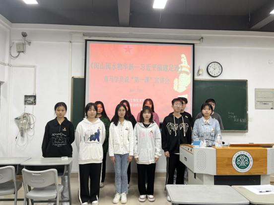 为追寻领袖足迹,共忆温暖瞬间,化学与生物技术学院于2023年10月10日在仓5-502教室开展《闽山闽水物华新——习近平福建足迹》青马学员说“第一课”宣讲会。会议由学院青马班学员邓煜芳主讲,青马班全体成员参加。