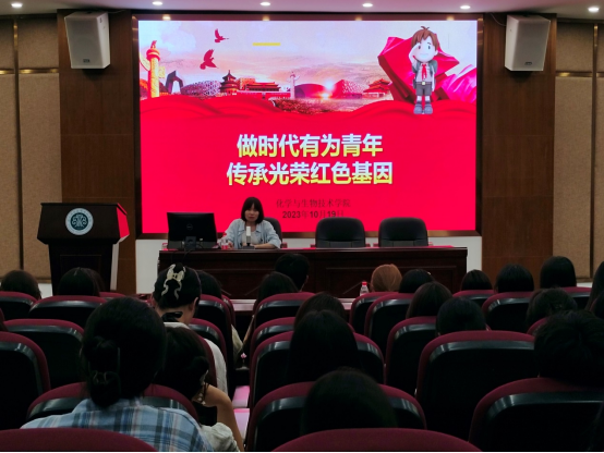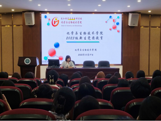 2023年10月19-20日,化学与生物技术学院,分别在仓山校区学术报告厅、福清校区多功能厅开展2023级新生党团教育。本次讲座由学院团委书记赖翠凤主讲,2023级全体新生参加。