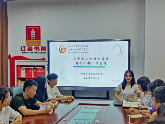 2023年10月25日,化学与生物技术学院在党员活动室召开团学干部工作交流会,学院团委书记赖翠凤、两委学生干部参加。