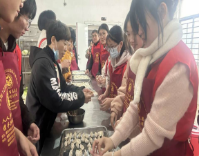 23应用化工技术1、2班前往福清市恩雨爱老院开展“礼敬传统,情暖冬至”喜迎冬至主题活动。志愿者们打扫房间,清洁环境;与老人话家常,聆听他们讲述难忘的时光;帮助老人们与子女视频通话,为他们带去家人的关心与祝福。他们还分工合作,清洗、和面、剁馅...一起包饺子。饺子煮熟后,志愿者将饺子舀入碗里,送入老人房中。在这个寒冷的冬日里,老人们品尝着热气腾腾的水饺,脸上洋溢着幸福的笑容,感受着冬至佳节的温暖。