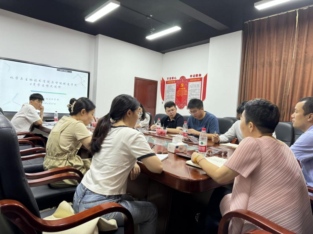 为深入落实立德树人根本任务,加强辅导员队伍能力提升,交流学生管理经验,考核辅导员工作应知应会情况,6月27日上午,化学与生物技术学院与智能制造学院于化生学院党建活动室联合召开六月辅导员述评会。化学与生物技术学院党总副书记张瑛、智能制造学院党总支副书记吕志达以及两院全体辅导员参加。