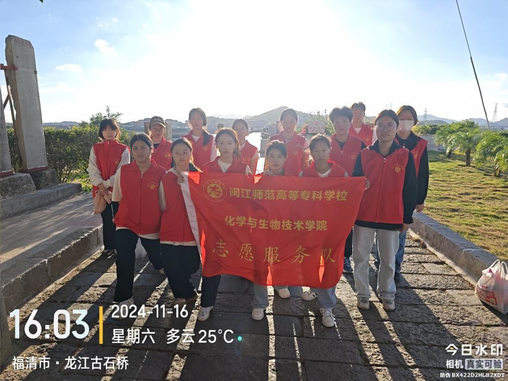 为打造洁净、舒适、安全的生活环境,进一步展现化生学院学生良好形象,2024年11月16日,化学与生物技术学院组织志愿服务队在海口镇龙江古桥开展“护河爱水,清洁家园”志愿服务活动。